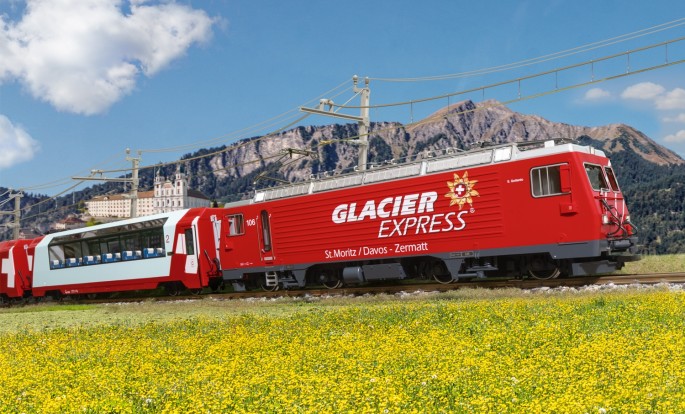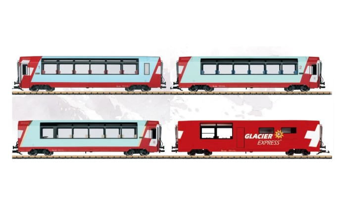 Passend zur HGe 4/4 II werden die bekannten Panoramawagen des Glacier-Express wieder aufgelegt. Erhältlich sind alle vier Wagengattungen: 2. Klasse (Bp), 1. Klasse (Ap), Speisewage (WRp) und Excellence Class (Aps).