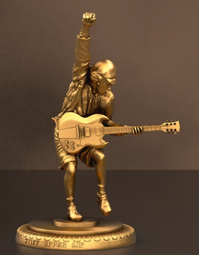 STIFF UPPER LIP – teuflisch gut. Mit der ikonischen Statue von Angus Young wird der Spirit des Rock‘n‘Roll auf einem Album Cover und der Bühne verewigt.