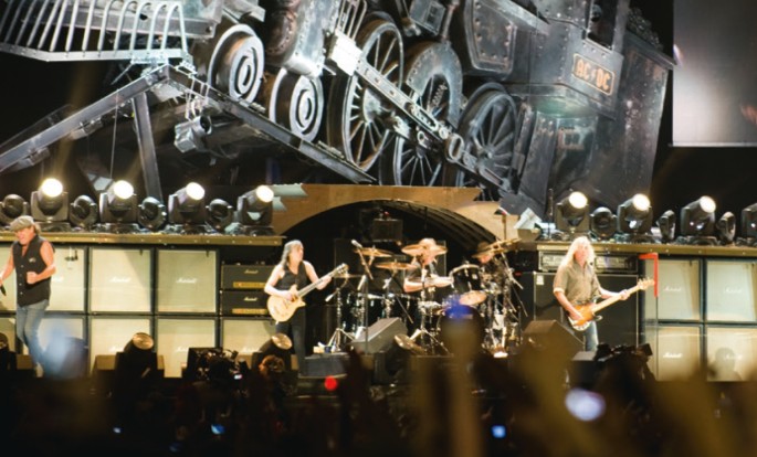 Die überdimensionale Lokomotive im Bühnenbild der AC/DC BLACK ICE Liveshows
