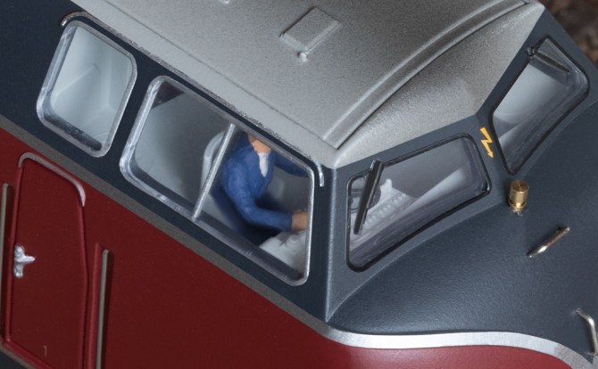 Bild unten: Der Führerstand ist detailliert nachgebildet und mit einer Lokführer-Figur besetzt.
