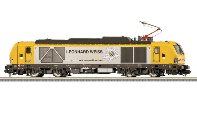 Auch das Gleisbauuntenehmen LEONHARD WEISS hat seit September 2023 einen solchen Dual-Mode Vectron der Baureihe 248 angemietet und setzt ihn vor Bauzügen ein.